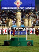 512-1024 wrestlers compete on the green field of the State Central Stadium-there is no time limit, no weight category and the arena is not fixed. They have the most number of tricks and the Mongolian national wrestling is the most challenging wrestling in the world. Mongolian wrestlers wear traditional Mongolian boots and special clothes for wrestling, Zodog - a small open-fronted vest.